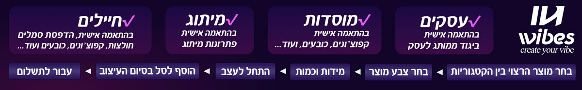 פותחים את השנה עם סטייל אחיד ומגניב! חולצות בעיצוב אישי לכיתה, לשכבה או לכל בית הספר – עם אפשרות לשם בית הספר, לוגו, משפט שכבתי או שמות אישיים. מושלם לימי גיבוש, טיולים, מסיבות סיום ואירועים בית-ספריים. הדפסה איכותית, הזמנות קבוצתיות ושירות מהיר במיוחד! הולכים למחנה? תדאגו שתהיו בולטים בשטח! בגדים ואקססוריז ממותגים למחנות קיץ, תנועות נוער, קבוצות ומשלחות – בעיצוב אישי שמתאים בדיוק לרוח הקבוצה. חולצות עם סמל, שם המחנה או סלוגן מגניב שיהפוך את החוויה לעוד יותר מגובשת ומיוחדת. מתאים להזמנות גדולות ולקבוצות בכל גיל.